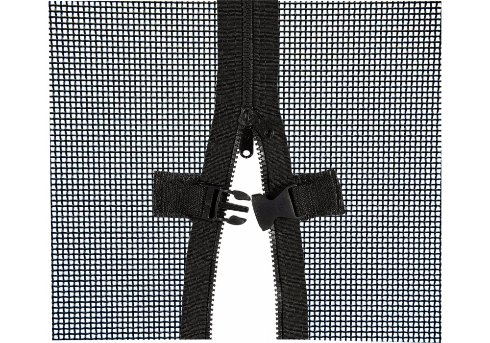 - Защитная сетка Сделана из нейлона. Упругая, прочная, мелкоячеистая, высокая. Но главное: она натянута не по окружности каркаса, а по окружности прыжкового полотна. Т.е. пружины находятся за её пределами. Прыгун не может угодить ногой в зазор между пружинами, получить травму. В модели батута Atlas Sport 312см вход закрывается на молнию. Снаружи предусмотрены ещё четыре фиксирующие защёлки — они не позволят прыгуну выпасть. если он упадёт на молнию, и та разойдётся.