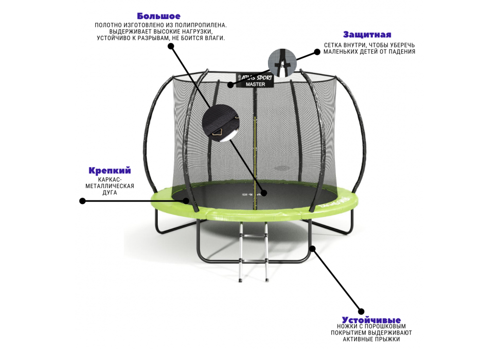 Батут Atlas Sport 312 см - 10ft Мастер с сеткой и лестницей отлично подходит для развлечения и приятного занятия спортом детей и взрослых.