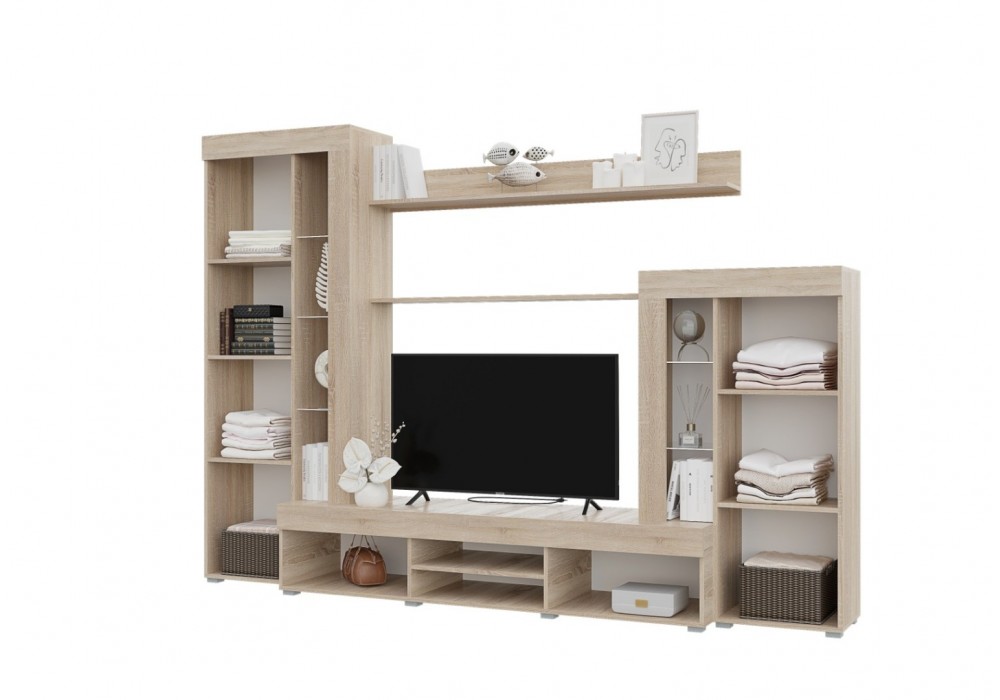 Сочетание цвета сонома и белого позволит органично вписать стенку в различные интерьеры.