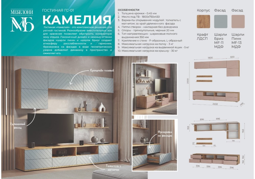 Гостиная Камелия ГС-01 (Крафт/Шарли Бриз MF11) BTS