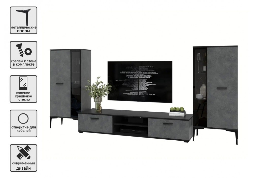 Гостиная Neo - 8 (Черный/Бетон портленд) фабрика Интерлиния