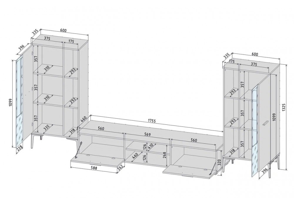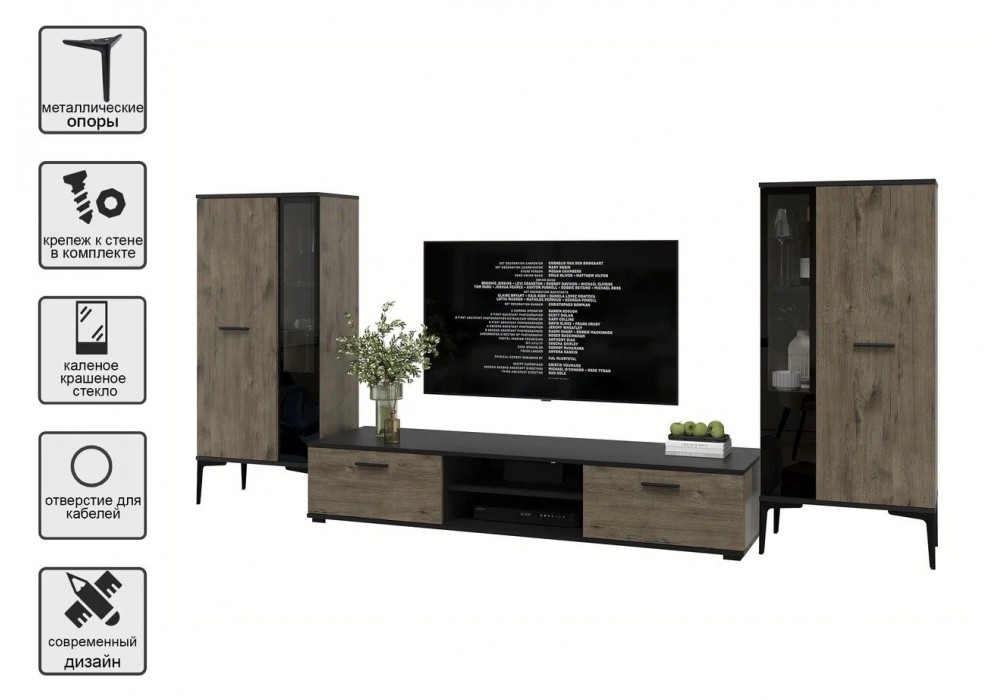 Гостиная Neo - 8 (Черный/Дуб веллингтон) фабрика Интерлиния