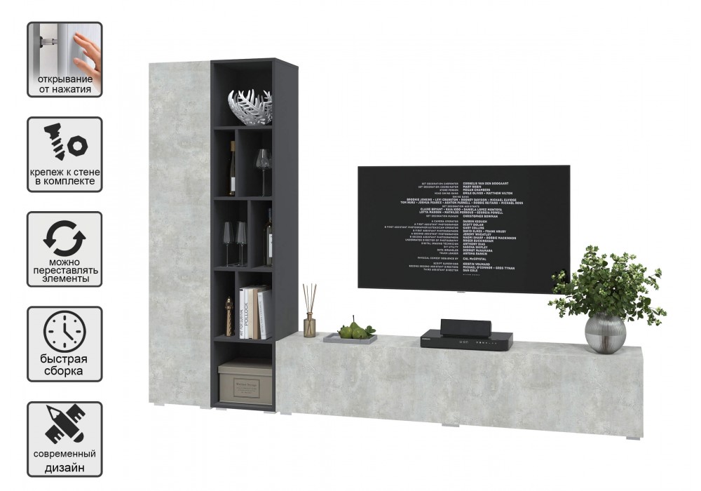 Гостиная Neo - 9 (Антрацит/Бетон лайт) фабрика Интерлиния