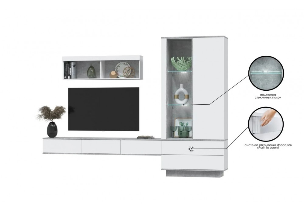 Гостиная Quartz 4 (Белый платинум / Бетон) фабрика Интерлиния