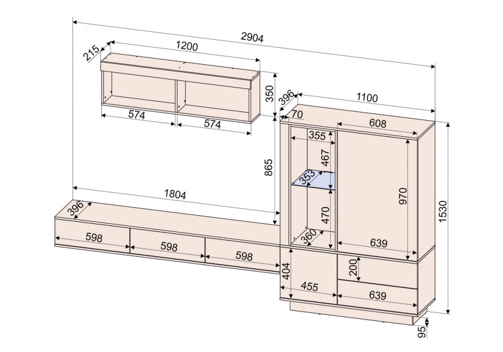 - Тумба (ТВ) Quartz QZ-Т3Ш; 1800x236x396