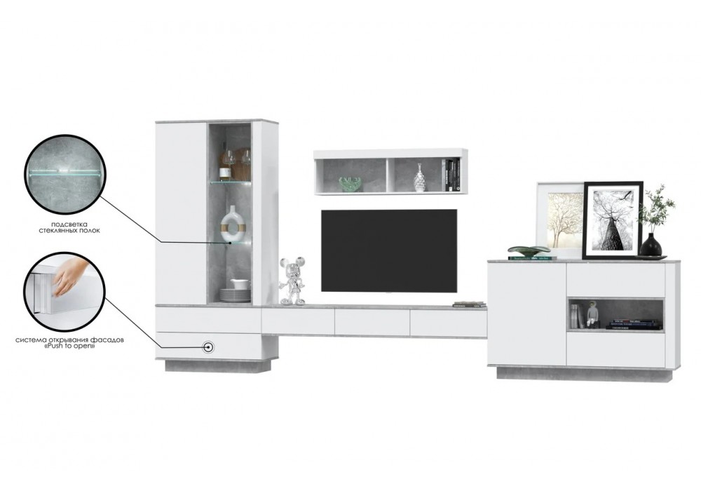 Гостиная Quartz 8 (Белый платинум / Бетон) фабрика Интерлиния