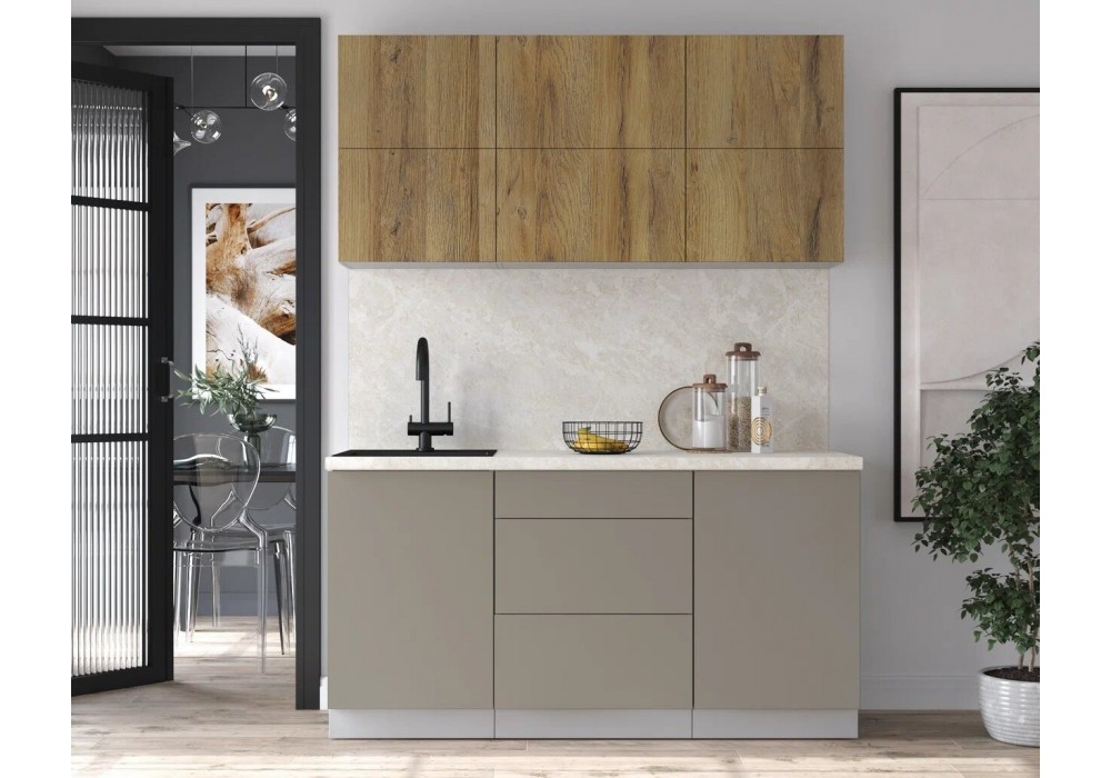 Готовая кухня Матте Soft-touch 1,6А (Дуб вотан/ Луна) фабрика Интерлиния