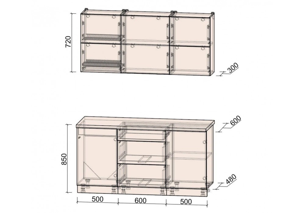 - Регулируемые опоры для нижних шкафов;