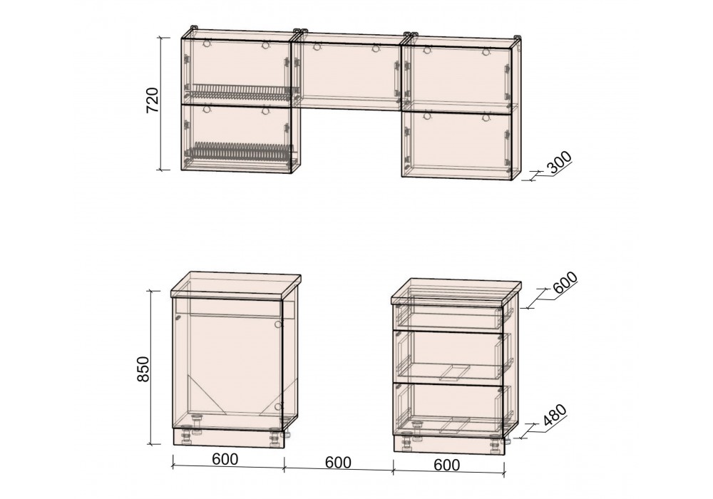 - шкаф нижний под духовой шкаф шириной 600 мм;