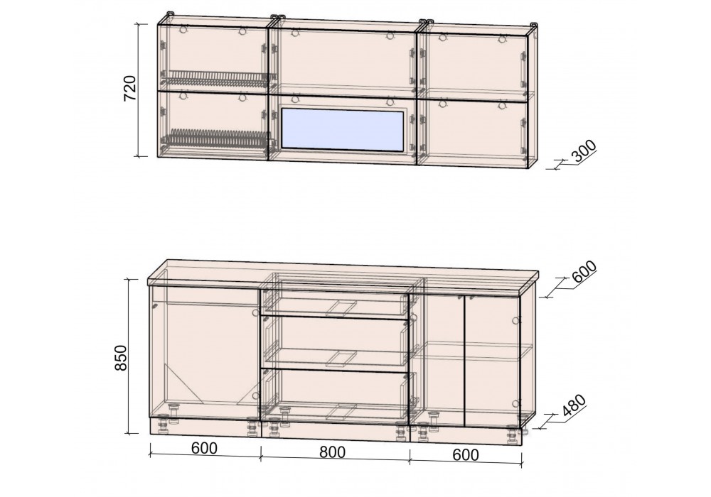Высота нижних шкафов (см) | 85 |
