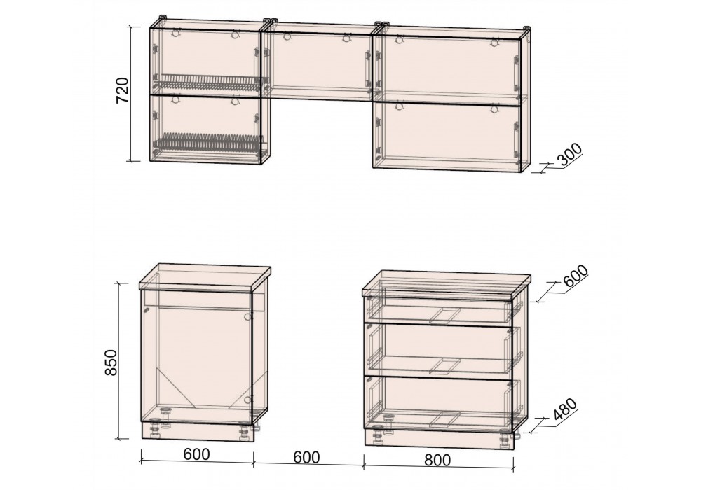- шкаф нижний под духовой шкаф шириной 600 мм;