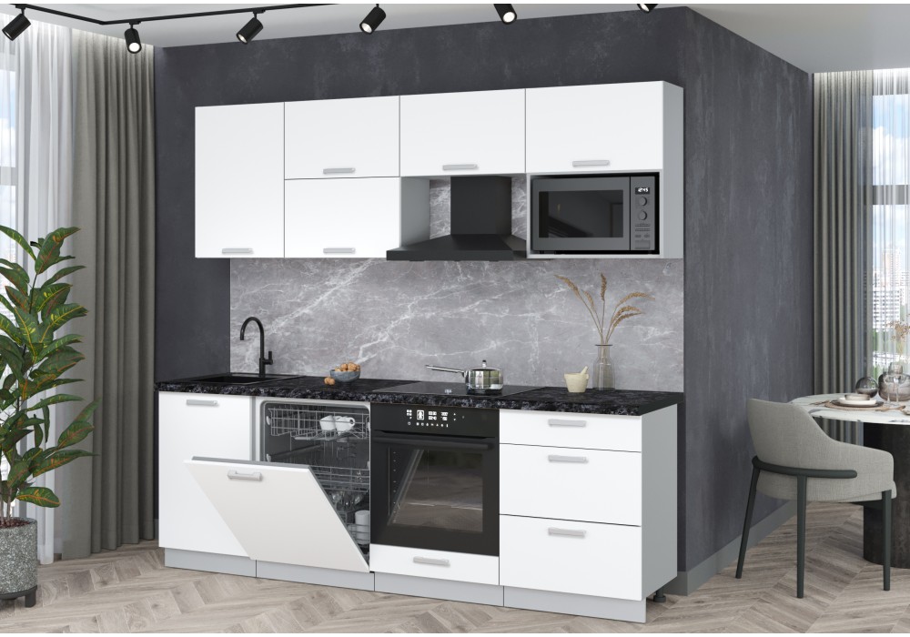 Готовая кухня Мила Лайт 2,3-ПМ2 (Белый Платинум/Белый Платинум/Кастилло темный) фабрика Интерлиния