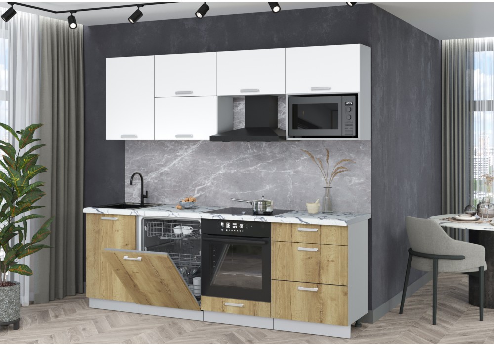 Готовая кухня Мила Лайт 2,3-ПМ2 (Белый Платинум/Дуб золотой/Гранит белый) фабрика Интерлиния