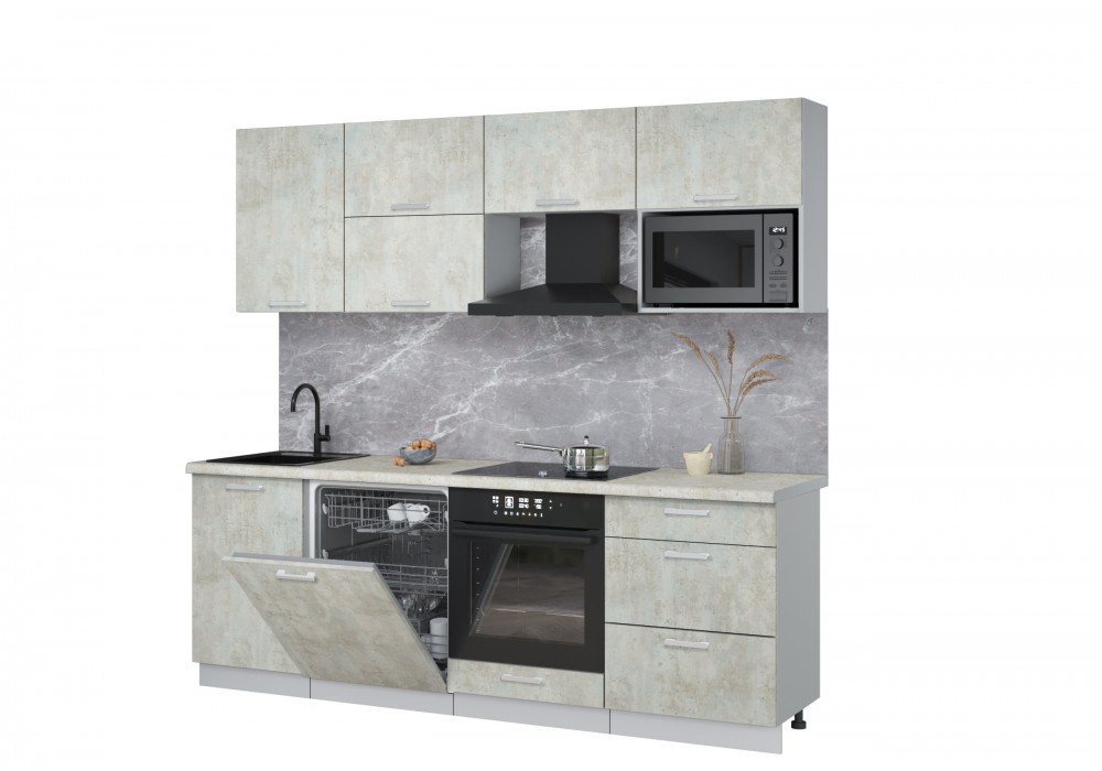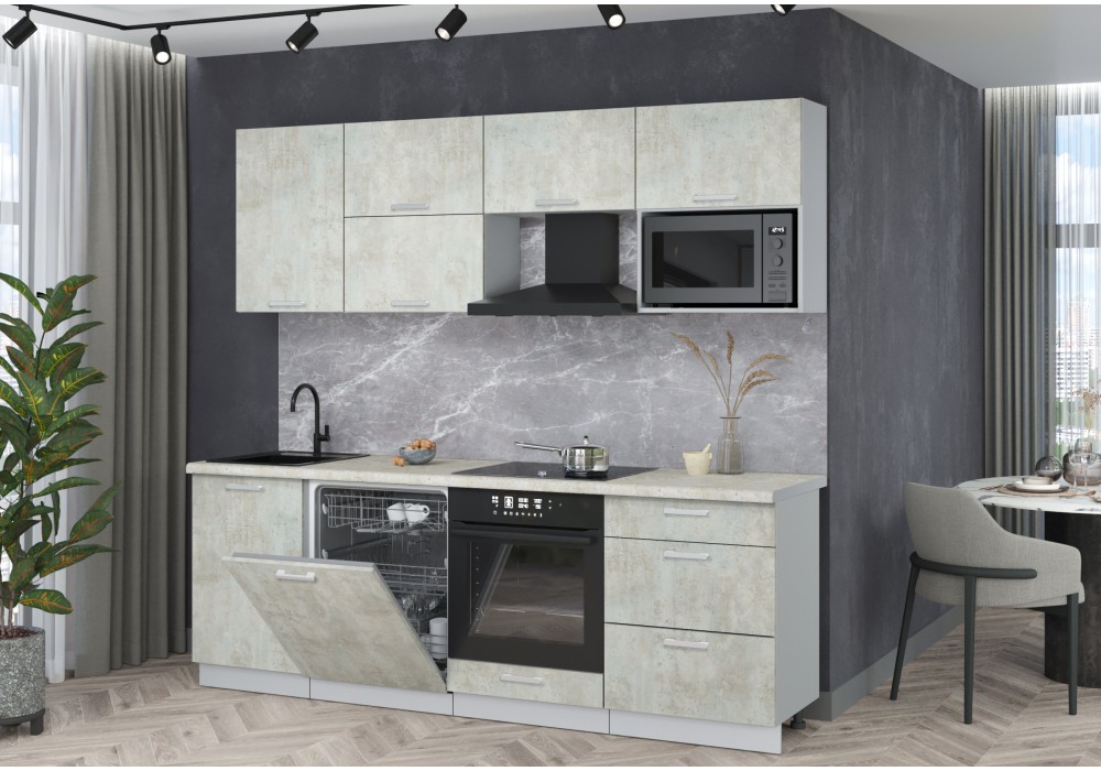 Готовая кухня Мила Лайт 2,3-ПМ2 (Бетон лайт/Бетон лайт/Опал светлый) фабрика Интерлиния