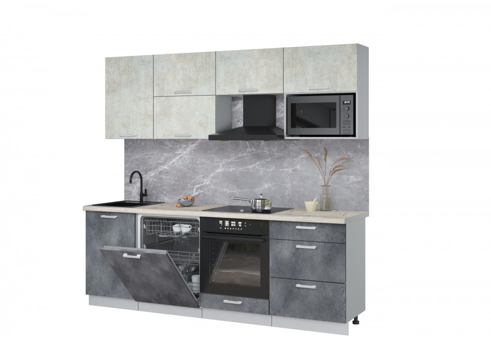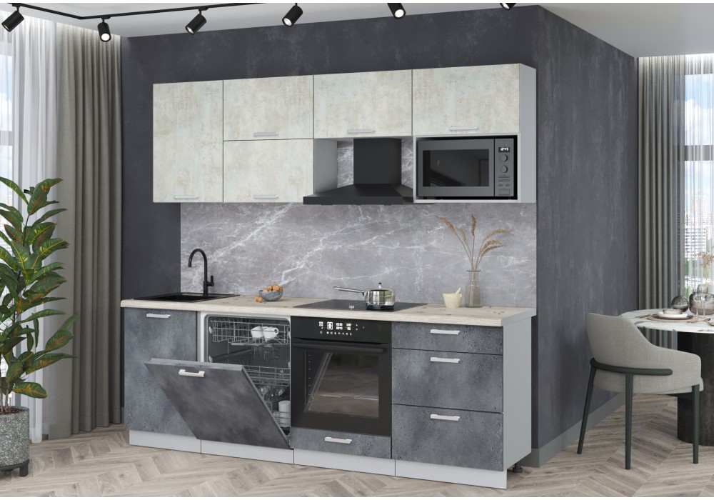 Готовая кухня Мила Лайт 2,3-ПМ2 (Бетон лайт/Бетон портленд/Сосна бискайская) фабрика Интерлиния