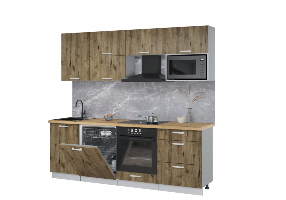Готовая кухня Мила Лайт 2,3-ПМ2 (Дуб веллингтон/Дуб веллингтон/Дуб бунратти) фабрика Интерлиния