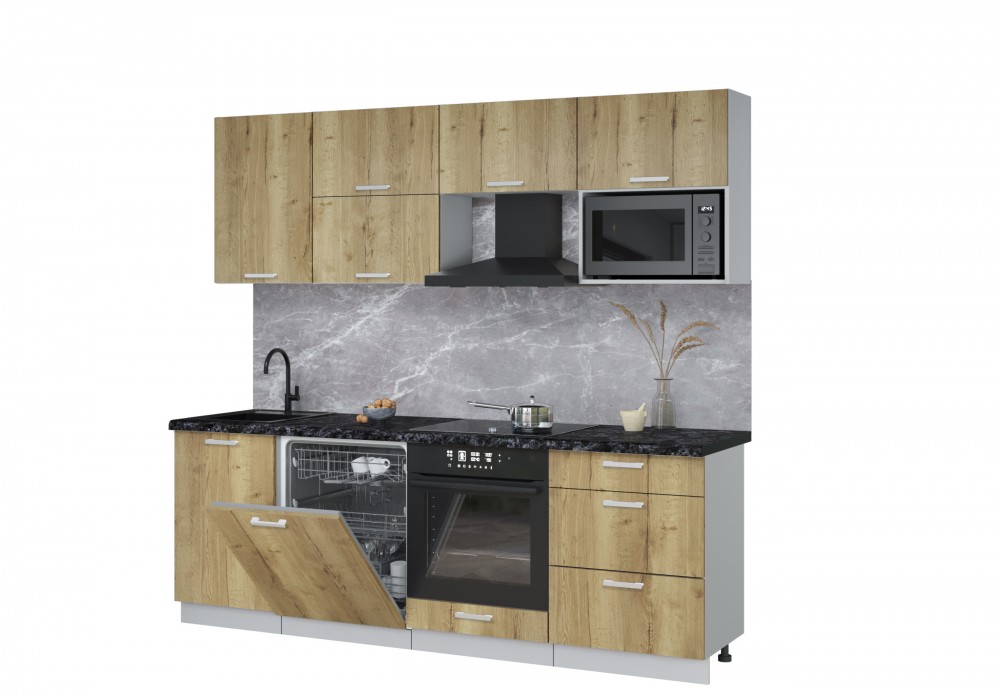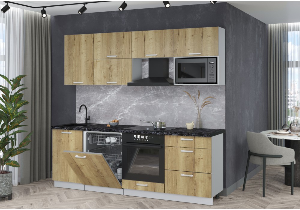 Готовая кухня Мила Лайт 2,3-ПМ2 (Дуб золотой/Дуб золотой/Кастилло темный) фабрика Интерлиния