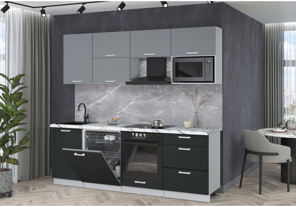 Готовая кухня Мила Лайт 2,3-ПМ2 (Серебро/Антрацит/Гранит белый) фабрика Интерлиния