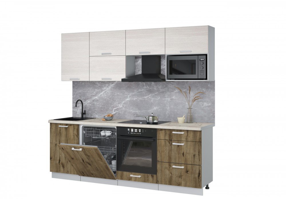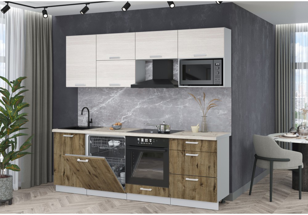 Готовая кухня Мила Лайт 2,3-ПМ2 (Вудлайн кремовый/Дуб веллингтон/Сосна бискайская) фабрика Интерлиния