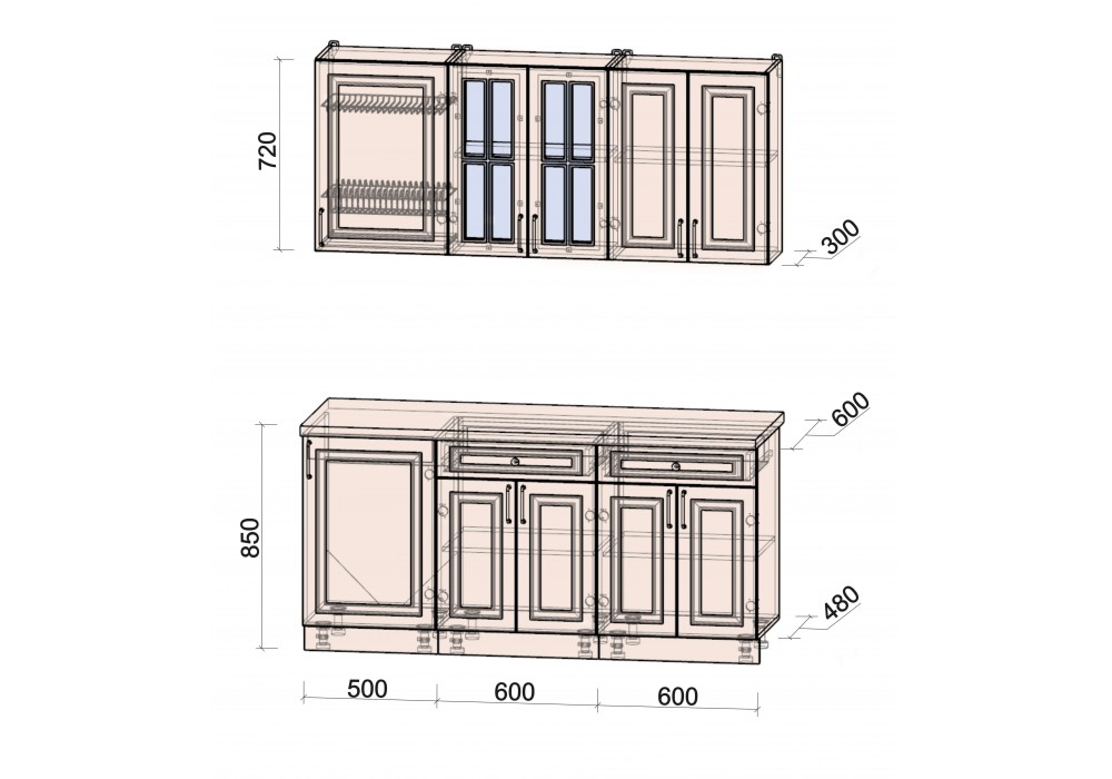 - Столешница (38 мм) отдельная на каждый шкаф или цельная (без увеличения стоимости);