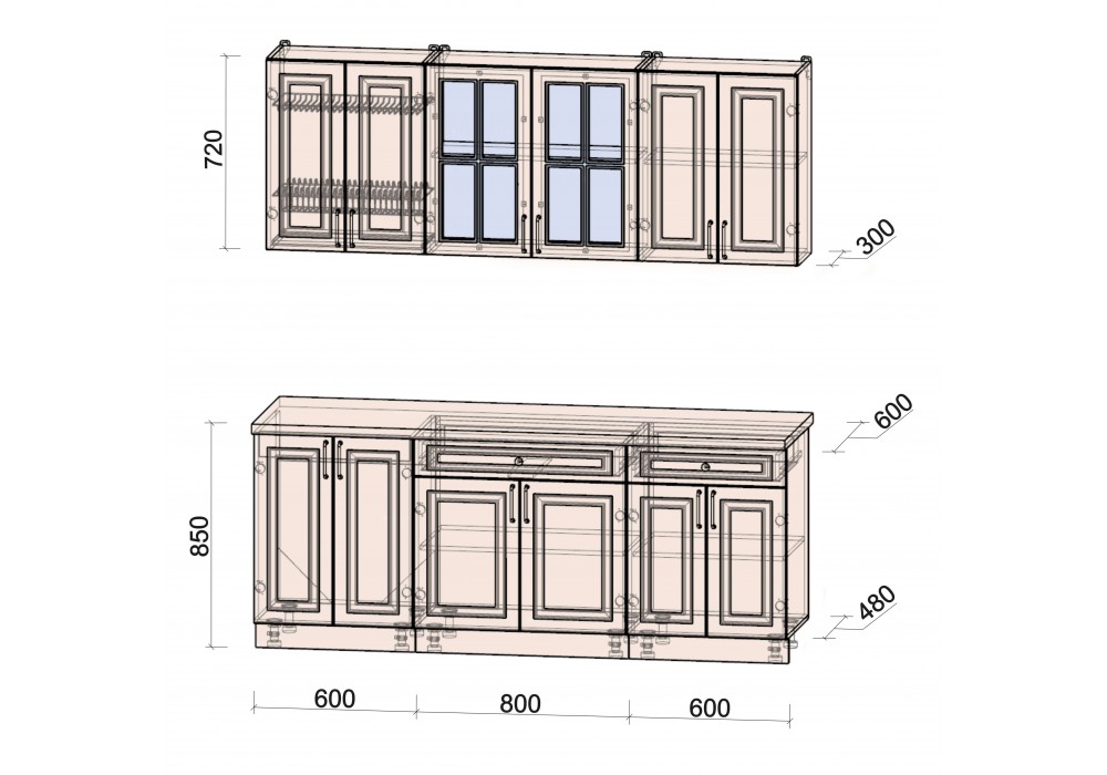 Глубина верхних шкафов (см) | 30 |