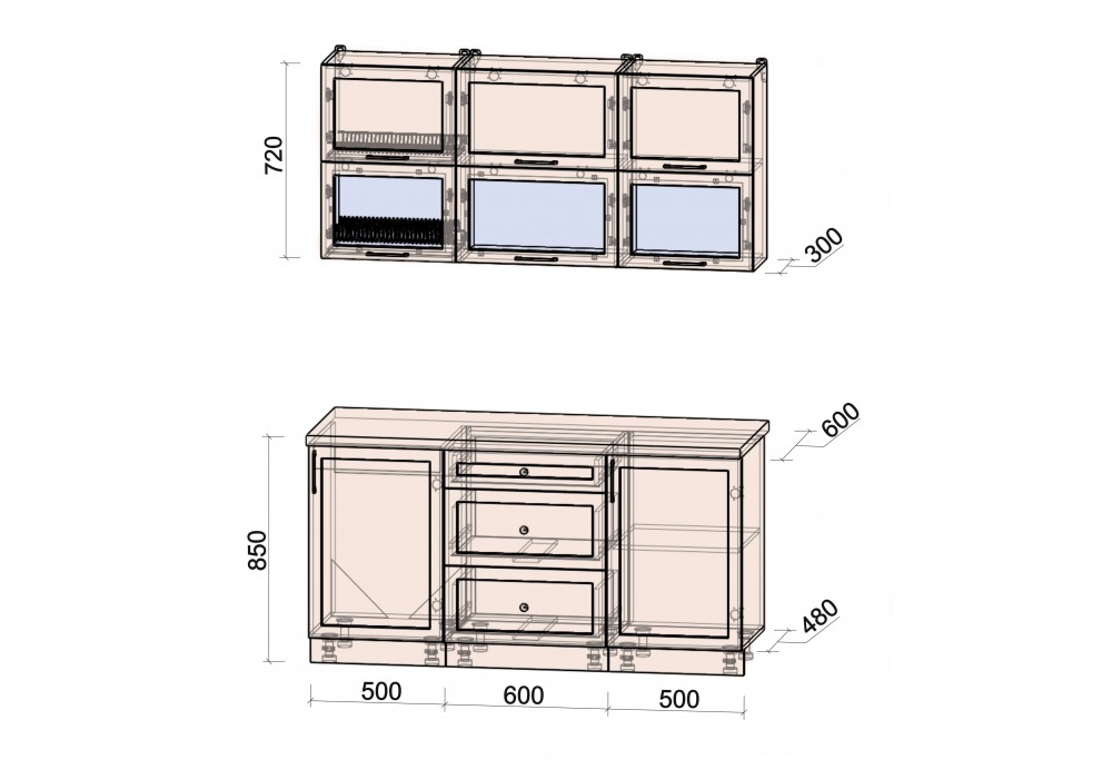 - шкаф нижний под духовой шкаф шириной 600 мм;