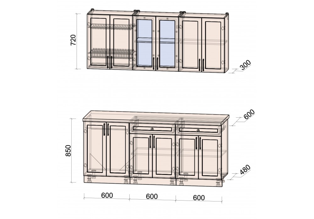 Глубина верхних шкафов (см) | 30 |