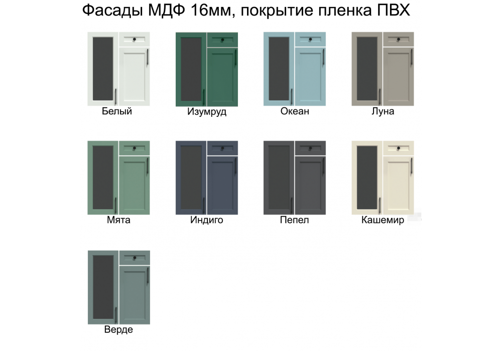 Материал фасада | Софт тач, МДФ, Пленочный, Матовый, Фрезерованный |