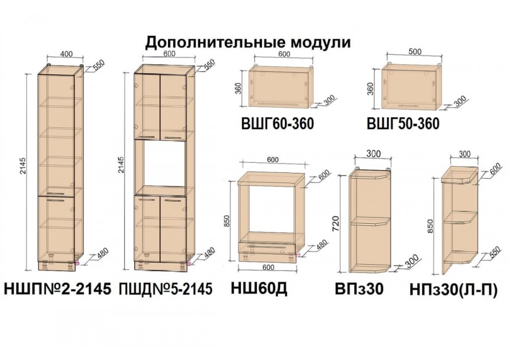 - шкаф нижний под духовой шкаф шириной 600 мм;