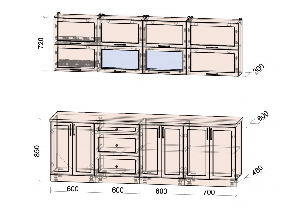- шкаф нижний под духовой шкаф шириной 600 мм;