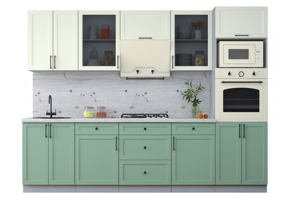 Готовая кухня Тренд Soft-touch 2,8В (Белый/Мята) фабрика Интерлиния