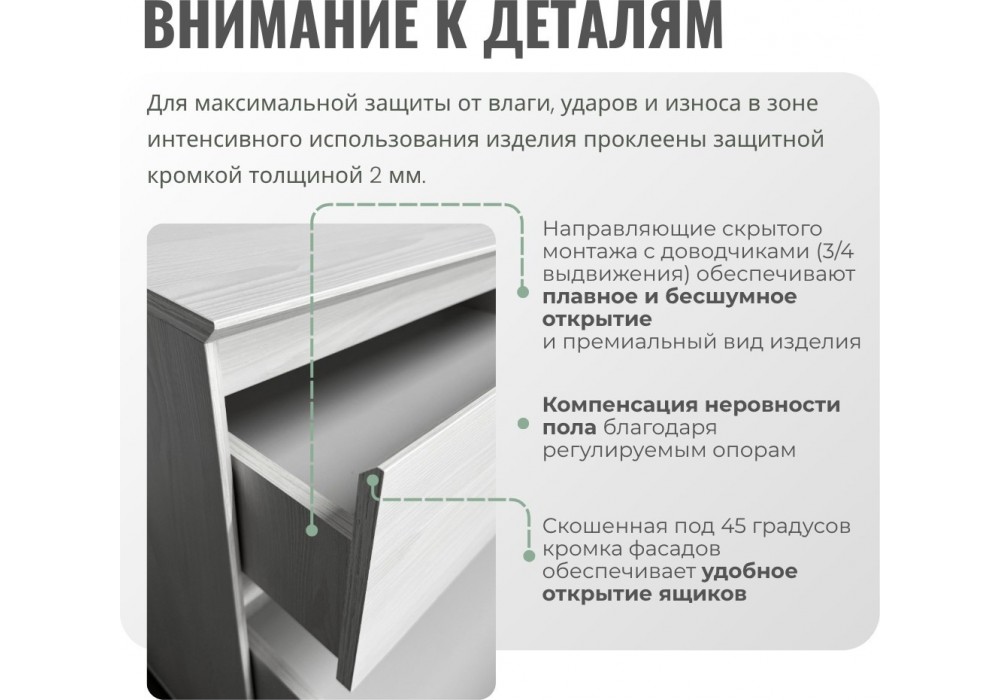 - Эстетичный вид (нет видимых отверстий или заглушек даже при открытой шуфлядке)