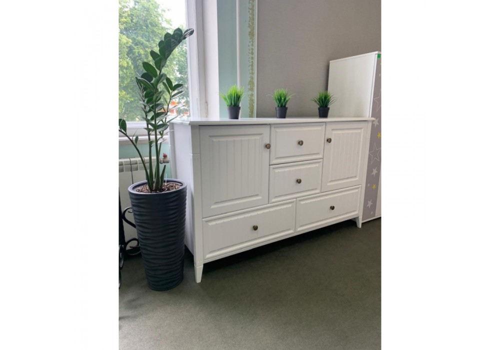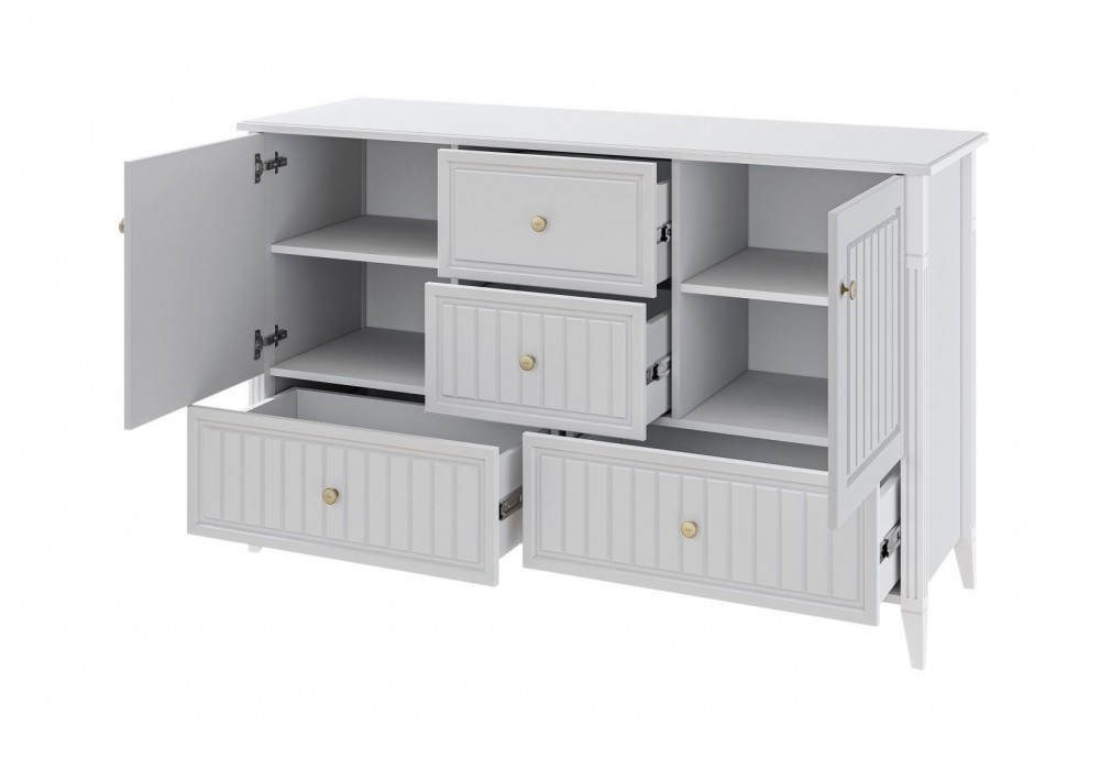 Комод Мэгги 2 двери, 4 ящика (Белый снег/Лак Белый) фабрика Браво Мебель