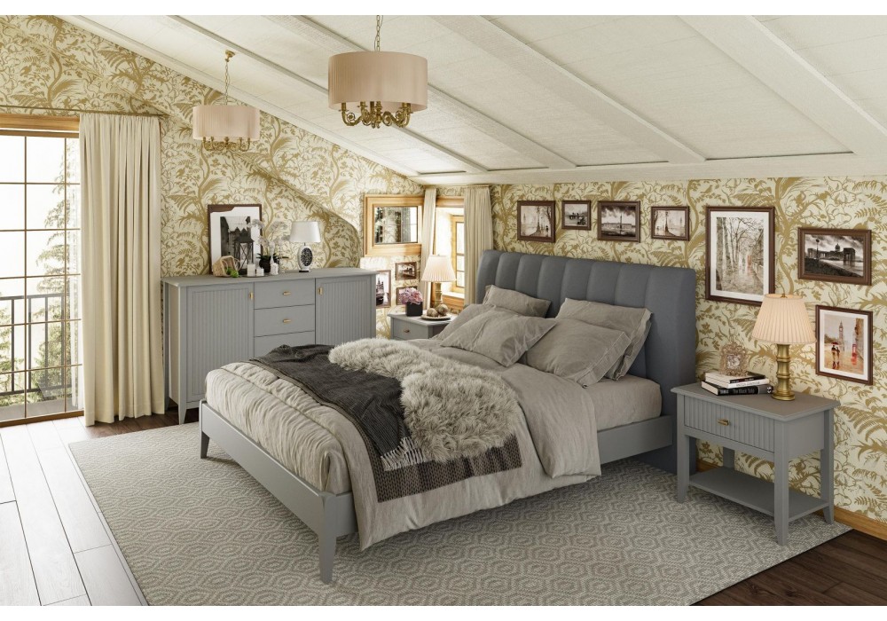 Корпус выполнен из ЛДСП цвета серый шифер, фасады – из МДФ с лаком антрацит.