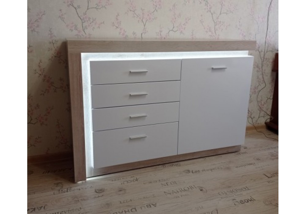 Комод с ящиками и дверкой Люмен 3 (Дуб сакраменто/Белый снег глянец) фабрика Ижмебель