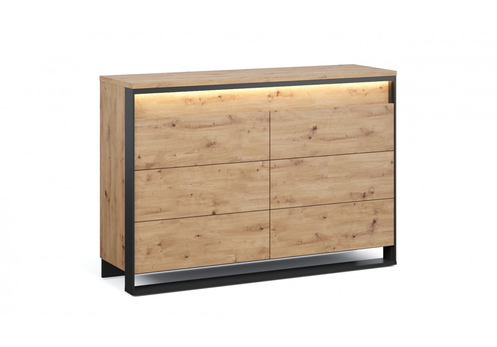 Комод Тринити 6 ящ. с подсветкой (Дуб Онтарио/чёрный) фабрика Империал