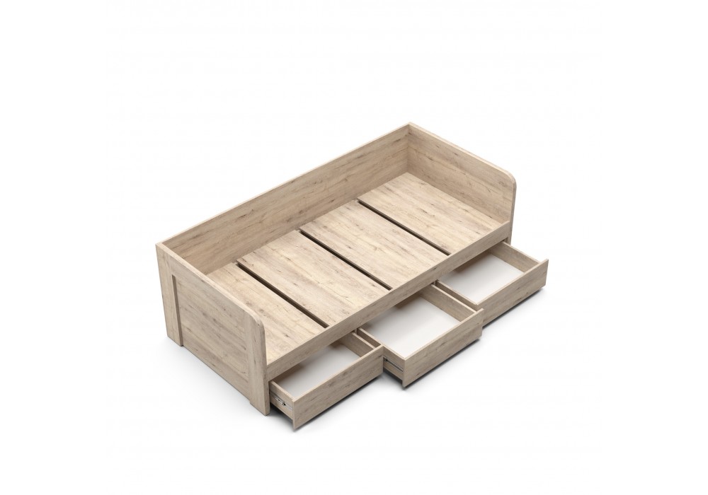 Удобное спальное место для одного человека. Изделие не ограничивается решением вопроса об организации комфортного сна. Три вместительных выдвижных ящика легко справляются с хранением постельного белья и прочего домашнего текстиля. Кровать Вирджиния способствует созданию гармонии в помещении, его опрятности и уюту.