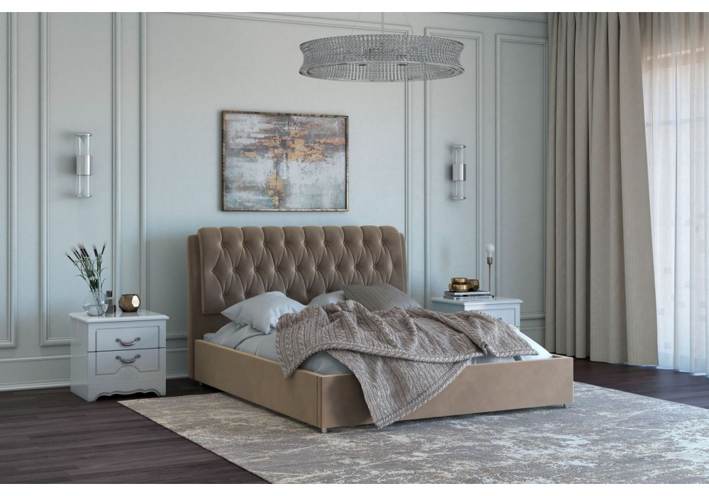 Кровать Белиста с подъемным механизмом (серо-бежевый) 160х200 фабрика БравоМебель