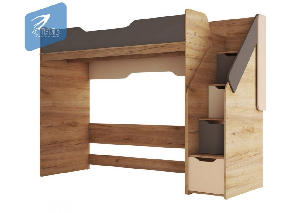 Кровать-чердак RICH КР-001 - Дуб крафт золотой/Миндаль/Глиняный серый (МК Стиль)