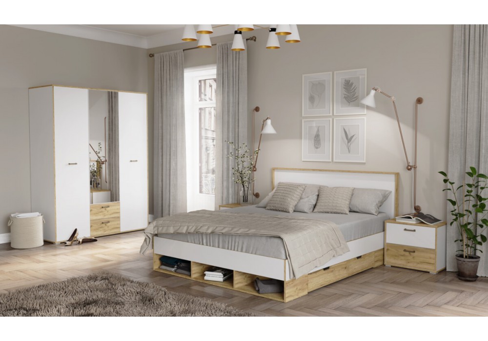 Кровать двойная SC-K160 с ящиками Сканди (Белый платинум/Дуб золотой) фабрика Интерлиния