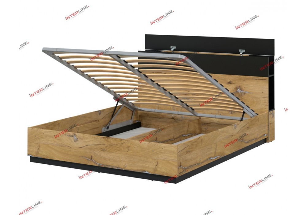 Кровать двуспальная 160 Quartz QZ-К160 с подъемным механизмом (Дуб нокс/Черный) фабрика Интерлиния