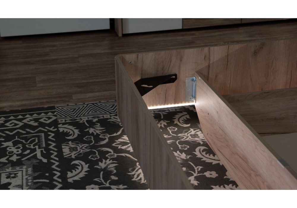 «Парящая в воздухе» кровать Джулия – это новинка современного рынка, выполнена в простых и лаконичных формах. Комбинированное изголовье из ЛДСП с мягкой накладкой - удобная, уютная и красивая деталь дизайна, позволит комфортно проводить время в кровати. Рамка из МДФ по краям со светодиодной подсветкой служит дополнительным освещением в ночное время и создает романтическое настроение. Надежный каркас кровати с трапециевидными ножками, расположены ближе к центру конструкции и практически не видны создают «эффект парения», светодиодная подсветка по периметру кровати усиливает эффект невесомости.