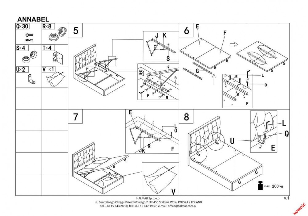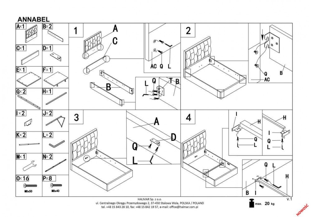 Кровать Halmar ANNABEL (серый) 160/200 с подъёмным механизмом
