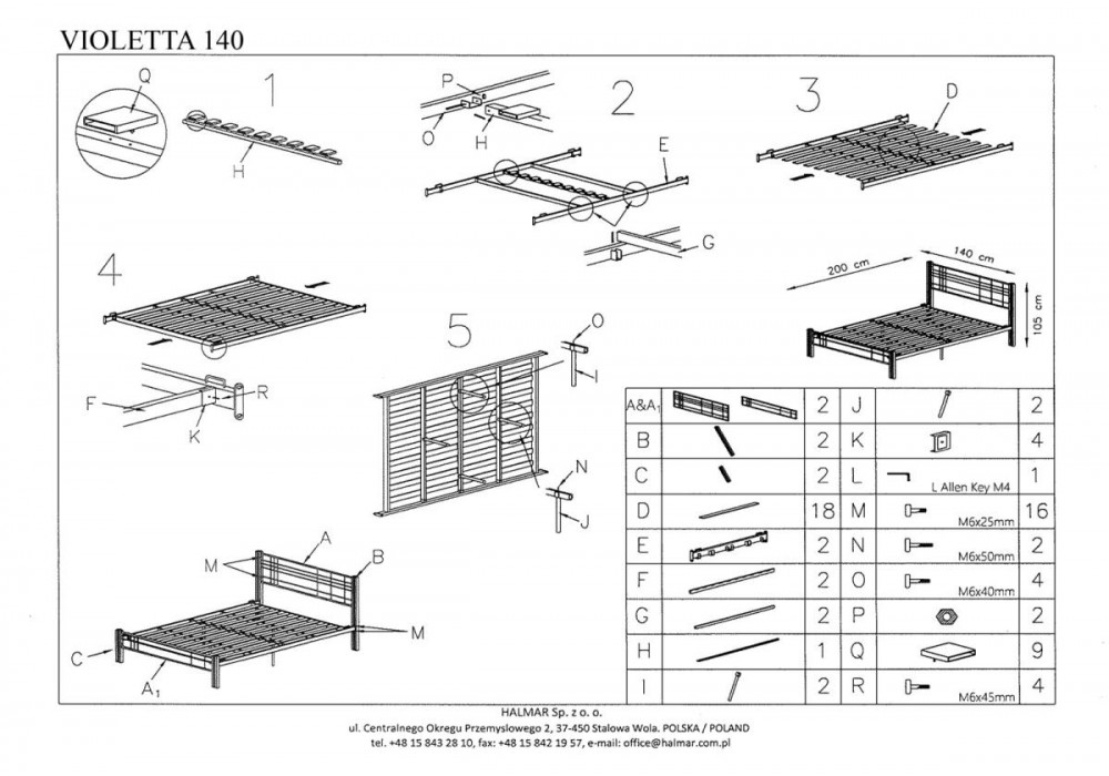 Кровать HALMAR VIOLETTA 140 античная черешня\черный