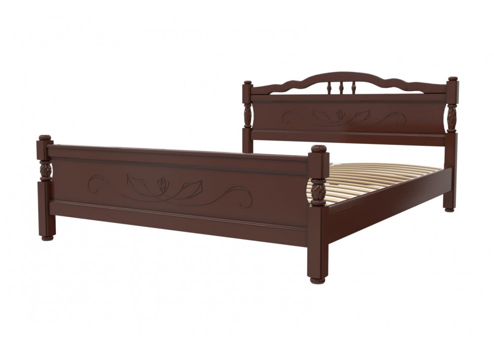 Стильная и элегантная кровать Карина-5 гармонично впишется в любой интерьер и подарит комфортный отдых. Резьба на ножках и спинках кровати освежают внешний вид и придают ей особую изюминку, что сделает обстановку спальни еще прекраснее.