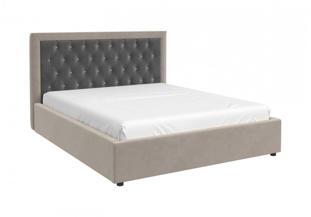Кровать Мартина с подъемным механизмом (бежевый/холодный серый с пуговицами) 160х200 фабрика БравоМебель
