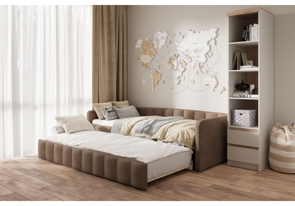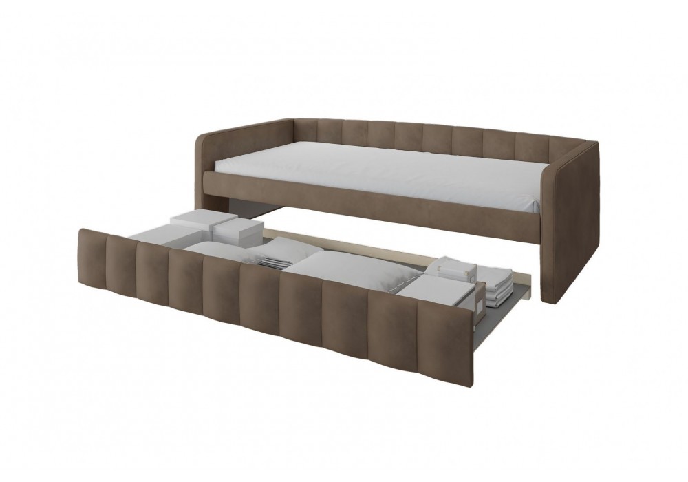 Универсальная кровать Молли от БРАВОмебель. Может комплектоваться дополнительным, выкатным спальным местом 90 см, которое можно использовать и как ящик для белья.