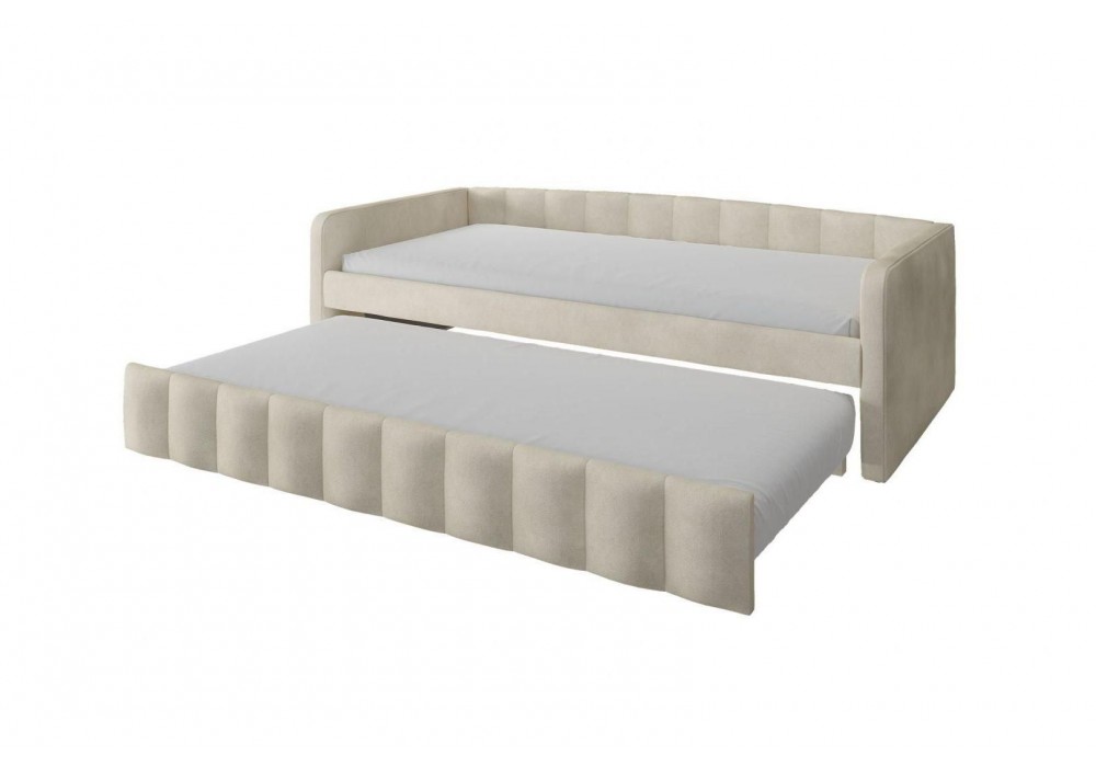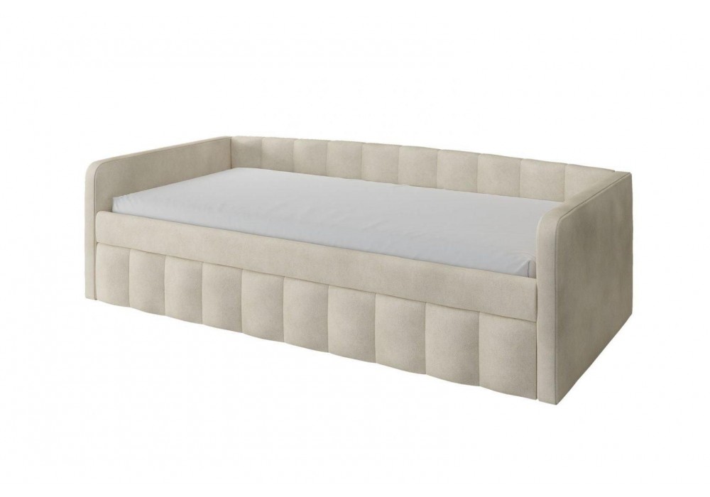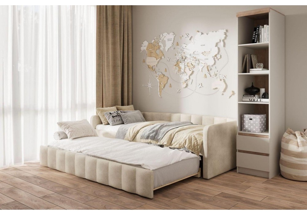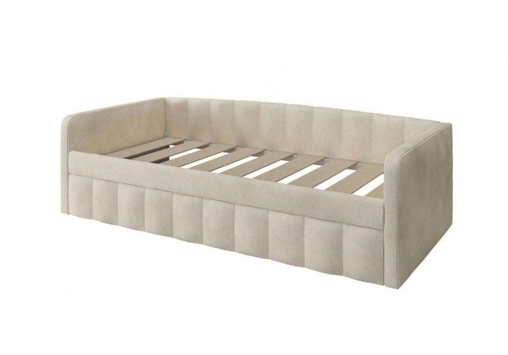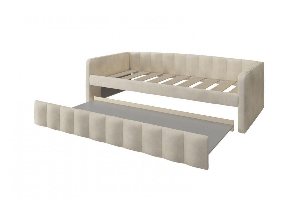 Универсальная кровать Молли от БРАВОмебель. Может комплектоваться дополнительным, выкатным спальным местом 90 см, которое можно использовать и как ящик для белья. Общее спальное место можно расширить до 180 см.