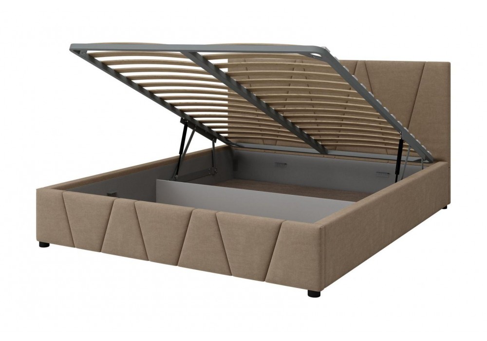 Кровать с мягким изголовьем Вендетта украшена стёжкографией в виде геометрического узора на спинке и изножье. Отделка придает декору строгости и лаконичности, а мягкая обивка - комфорта и роскоши. Интерьерная кровать Вендетта комплектуется металлокаркасом и дополнительно может быть оснащена подъемным механизмом с газовым амортизатором (газлифтом). Двуспальные мягкие кровати БРАВОмебель имеют надежный каркас из МДФ, фанеры и ЛДСП. В качестве наполнителя используются различные материалы, такие как холкон, поролон и периотек, которые обеспечивают мягкость, комфорт и долговечность изделия. Внешний слой обивки кровати выполнен из износостойкой качественной ткани.