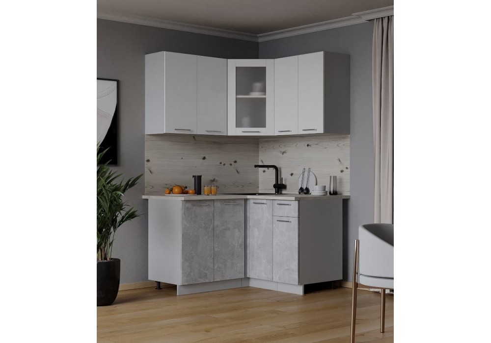 Кухонный гарнитур Мила 1,2х1,2 м (Белый Платинум/Бетон) фабрика Интерлиния